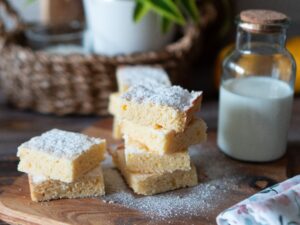 • En un bol amplio, tamizamos la harina junto con la levadura y la sal. Añadimos el azúcar y mezclamos. Reservamos. En un cazo, derretimos la mantequilla, agregamos la leche y dejamos que se caliente unos minutos sin llegar a ebullición.